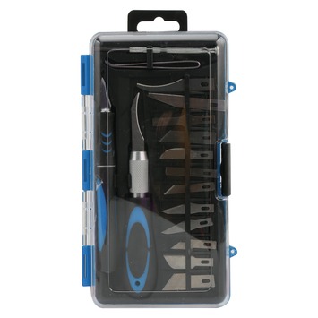 Ce jeu de lames pour travaux de précision Handson est indispensable pour toutes vos découpes de précision dans divers matériaux. Doté de 2 poignées différentes et un assortiment de 12 lames, vous trouverez toujours la combinaison idéale pour l'incision à faire. Si vous devez couper très précisément le cuir, le papier, le carton, le liège, le bois et le tissus, l'ensemble de lames est ce qu'il vous faut.