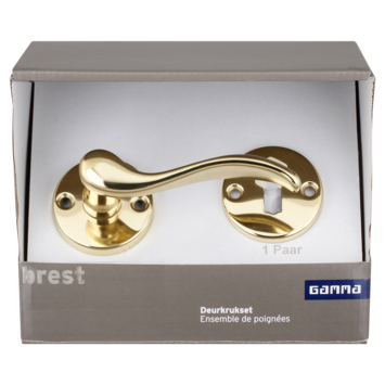 Equipez votre porte intérieure ouvrant à gauche ou à droite d'une poignée en 1, 2, 3 avec cet ensemble de poignée de porte avec poignée de porte, rosace ronde et vis. Choisissez parmi différents modèles, dont cette poignée de porte Brest classique en laiton.