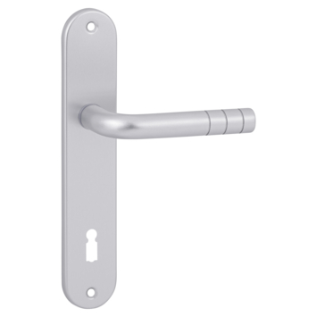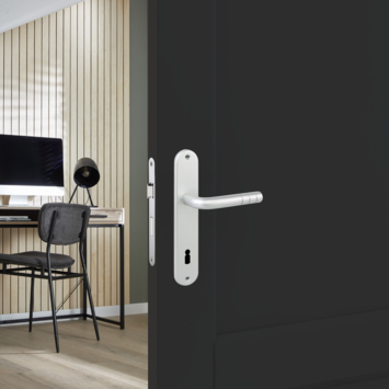 Equipez votre porte intérieure ouvrant à gauche ou à droite d'une poignée en 1, 2, 3 avec cet ensemble de poignée de porte avec poignée de porte, plaque longue et vis. Choisissez parmi différents modèles, dont cette poignée de porte New York en aluminium.