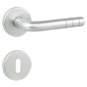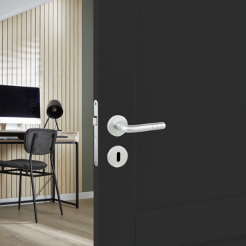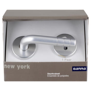 Equipez votre porte intérieure ouvrant à gauche ou à droite d'une poignée en 1, 2, 3 avec cet ensemble de poignée de porte avec poignée de porte, rosace ronde et vis. Choisissez parmi différents modèles, dont cette poignée de porte New York en aluminium.