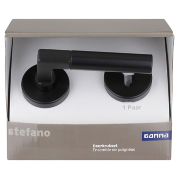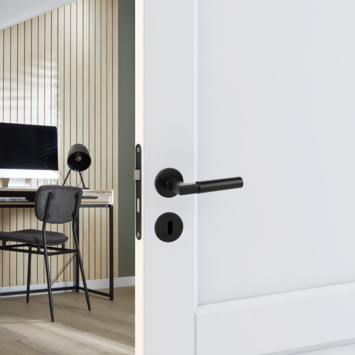 Equipez votre porte intérieure ouvrant à gauche ou à droite d'une poignée en 1, 2, 3 avec cet ensemble de poignée de porte avec poignée de porte, rosace ronde et vis. Choisissez parmi différents modèles, dont cette poignée de porte moderne Stefano en aluminium noir.