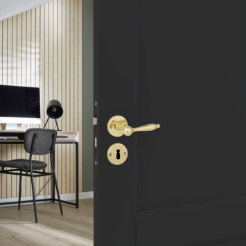 Equipez votre porte intérieure ouvrant à gauche ou à droite d'une poignée en 1, 2, 3 avec cet ensemble de poignée de porte avec poignée de porte, rosace ronde et vis. Choisissez parmi différents modèles, dont cette poignée de porte classique Toulon en laiton.