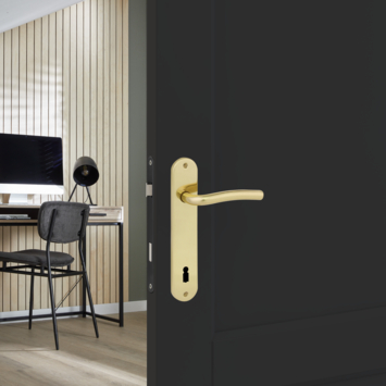 Equipez votre porte intérieure ouvrant à gauche ou à droite d'une poignée en 1, 2, 3 avec cet ensemble de poignée de porte avec poignée de porte, plaque longue et vis. Choisissez parmi différents modèles, dont cette poignée de porte Wave en laiton.