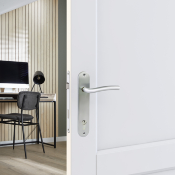 Equipez votre porte intérieure ouvrant à gauche ou à droite d'une poignée en 1, 2, 3 avec cet ensemble de poignée de porte avec poignée de porte, plaque longue et vis. Choisissez parmi différents modèles, dont cette poignée de porte Theme en chrome mat.