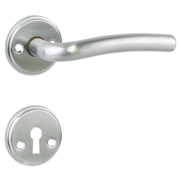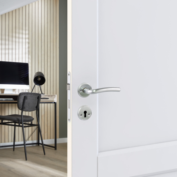 Equipez votre porte intérieure ouvrant à gauche ou à droite d'une poignée en 1, 2, 3 avec cet ensemble de poignée de porte avec poignée de porte, rosace ronde et vis. Choisissez parmi différents modèles, dont cette poignée de porte intemporelle Wave en chrome mat.