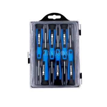 Le jeu de tournevis TX 6 pièces de Handson comprend 6 tournevis différents en chrome-molybdène solide. Les tournevis conviennent pour vis Torx de moins de 3,5 mm, notamment de tailles TX5, TX6, TX8, TX9 et TX10. Ce set de 6 tournevis sont vu leur taille surtout conçus pour vos travaux de précision. La tête rotative de ces tournevis de précision facilite le vissage de vis fines et délicates pour les travaux d'ingénierie électrique et de mécanique de précision. Ce set n'est pas ce que vous cherchez ? GAMMA vous propose plusieurs autres jeux de tournevis.