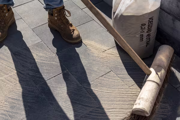 Remplissage des joints : Pour remplir les joints, optez par exemple pour du sable ou un produit de jointoyage spécial pour allées et accès. Leur meilleure étanchéité empêche les mauvaises herbes de s’y enraciner.