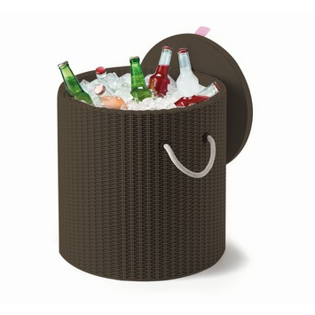 Keter est le crack des accessoires de jardin en plastique, dont ce siège Cool de couleur taupe. Il s'agit d'un 2 en 1 : un pouf et un réfrigérateur avec système de vidange d'eau et poignées pratiques. Également disponible en couleur anthracite.