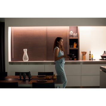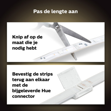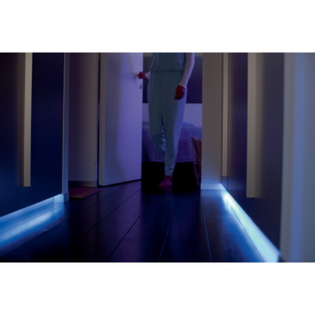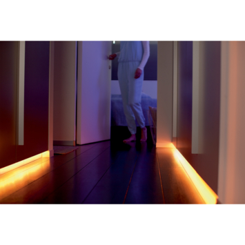 Le Philips Hue Lightstrip Plus est la source lumineuse la plus flexible jamais conçue. Vous pouvez plier, raccourcir ou rallonger la bande pour lui donner n'importe quelle forme. Vous pouvez par exemple éclairer les surfaces plus grandes avec une lumière douce, élégante et indirecte : posez par exemple le lightstrip sur des étagères ou des voûtes, sous des armoires de cuisine ou derrière des poutres. Le Lightstrip Plus produit 16 millions de couleurs et 50 000 teintes de blanc. Vous pouvez ainsi commander le ruban assis dans votre fauteuil avec l'application Hue de votre smartphone ou tablette, qui vous permet d'allumer et d'éteindre la lumière ou d'en régler l'intensité. Vous souhaitez découvrir encore plus de possibilités ? Dans ce cas, associez le Lightstrip au Philips Hue Bridge disponible séparément. Vous pourrez alors bénéficier d'encore plus de possibilités d'éclairage, telles que la personnalisation de scénarios d'éclairage, des minuteries et routines dans toute la maison.
