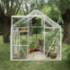 La serre de jardin Kate de Royal Well est une belle serre pratique avec un toit pointu et une porte coulissante. Le verre de sécurité de 3 mm d’épaisseur est solidement fixé avec du ruban mousse amortissant à l’intérieur et des bandes de vitrage en PVC à l’extérieur, faciles à installer et assorties à la couleur des profilés. La fondation intégrée de la serre Kate assure une entrée confortable. Attention! Si vous placez la serre sur un sol non pavé, n’oubliez pas de commander des ancres de fondation supplémentaires de la couleur du cadre. La serre est équipée de gouttières, complètes avec deux tuyaux de descente, pour recueillir facilement l’eau de pluie. Avec une hauteur de faîtage de 214,5 cm, cette serre offre une hauteur de travail confortable, vous permettant de cultiver facilement.