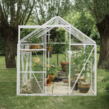 La serre de jardin Kate de Royal Well est une belle serre pratique avec un toit pointu et une porte coulissante. Le verre de sécurité de 3 mm d’épaisseur est solidement fixé avec du ruban mousse amortissant à l’intérieur et des bandes de vitrage en PVC à l’extérieur, faciles à installer et assorties à la couleur des profilés. La fondation intégrée de la serre Kate assure une entrée confortable. Attention! Si vous placez la serre sur un sol non pavé, n’oubliez pas de commander des ancres de fondation supplémentaires de la couleur du cadre. La serre est équipée de gouttières, complètes avec deux tuyaux de descente, pour recueillir facilement l’eau de pluie. Avec une hauteur de faîtage de 214,5 cm, cette serre offre une hauteur de travail confortable, vous permettant de cultiver facilement.