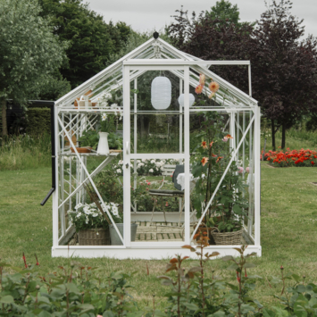 La serre de jardin Mary de Royal Well est une sere raffinée qui offre non seulement un espace généreux pour la culture, mais aussi un lieu de détente. Ce modèle, avec son toit pointu et sa porte coulissante équipée d’une serrure à crochet, allie fonctionnalité et esthétique. Le verre de sécurité de 3 mm d’épaisseur est fixé avec du ruban mousse amortissant à l’intérieur et des bandes de vitrage en PVC à l’extérieur, faciles à installer et parfaitement assorties à la couleur des profilés. La fondation robuste fournie assure une base stable, adaptée aux surfaces pavées et non pavées. La serre est équipée de gouttières et de deux tuyaux de descente pour récupérer l’eau de pluie. Avec une hauteur de faîtage de 245 cm, cette serre offre une sensation d’espace et d’ouverture, idéale pour une culture confortable.