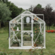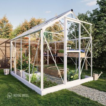 La serre de jardin Mary de Royal Well est une serre raffinée qui offre non seulement un espace généreux pour la culture, mais aussi un lieu de détente. Ce modèle, avec son toit pointu et sa porte coulissante équipée d’une serrure à crochet, allie fonctionnalité et esthétique. Le verre de sécurité de 3 mm d’épaisseur est fixé avec du ruban mousse amortissant à l’intérieur et des bandes de vitrage en PVC à l’extérieur, faciles à installer et parfaitement assorties à la couleur des profilés. La fondation robuste fournie assure une base stable, adaptée aux surfaces pavées et non pavées. La serre est équipée de gouttières et de deux tuyaux de descente pour récupérer l’eau de pluie. Avec une hauteur de faîtage de 245 cm, cette serre offre une sensation d’espace et d’ouverture, idéale pour une culture confortable.