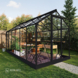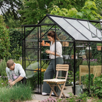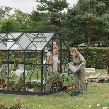 La serre de jardin Mary de Royal Well est une serre raffinée qui offre non seulement un espace généreux pour la culture, mais aussi un lieu de détente. Ce modèle, avec son toit pointu et sa porte coulissante équipée d’une serrure à crochet, allie fonctionnalité et esthétique. Le verre de sécurité de 3 mm d’épaisseur est fixé avec du ruban mousse amortissant à l’intérieur et des bandes de vitrage en PVC à l’extérieur, faciles à installer et parfaitement assorties à la couleur des profilés. La fondation robuste fournie assure une base stable, adaptée aux surfaces pavées et non pavées. La serre est équipée de gouttières et de deux tuyaux de descente pour récupérer l’eau de pluie. Avec une hauteur de faîtage de 245 cm, cette serre offre une sensation d’espace et d’ouverture, idéale pour une culture confortable.