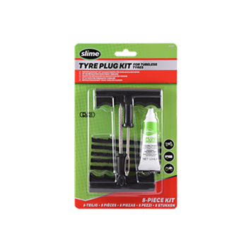 Le kit de réparation de pneus Slime de 8 pièces contient tout ce dont vous avez besoin pour fermer ces crevaisons ennuyeuses. Utilisez l'alésoir et le bouchon ergonomiques et confortables à poignée en T pour nettoyer le trou et insérer les bouchons de pneu extra solides. Parfait pour tous les véhicules équipés de pneus tubeless tout-terrain, voitures tout-terrain, brouettes, tondeuses à gazon et autres pneus tubeless.
