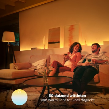 Goed te dimmen, veel mooie kleuren, te bedienen via smartphone maar ook via lichtknopje en bijv. ‘Toon’