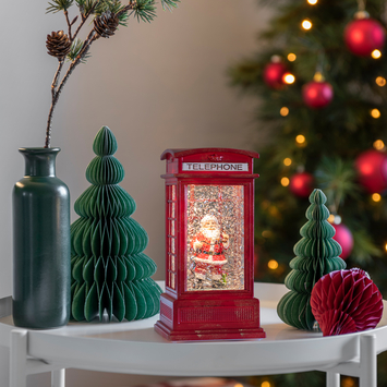 Konstsmide Cabine téléphonique LED rouge Père Noël 9.5x20cm 1x couleur ambre rempli d'eau marche/arrêt/5h minuterie usb/batterie pour intérieur