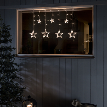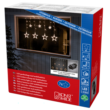 Konstsmide Rideau LED étoiles 3cl+4gr 67x90cm 77x couleur ambre multi 4,5v câble transparent, extérieur/intérieur