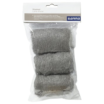 Fijne en sterke staalwol, na het gebruik bruizeld de staalwol niet kapot.