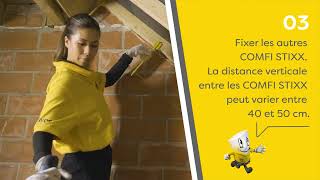 Comfi® UNI est un rouleau en laine de verre revêtu d’un voile doux, conditionné sous forme de rouleau pour le transport. Un prémarquage tous les 10 cm facilite les découpes et permet à Comfi® UNI de s’adapter aux différents entre-axes présents entre les chevrons de toiture.