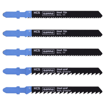 - L'emballage contient 5 lames de scie sauteuse.