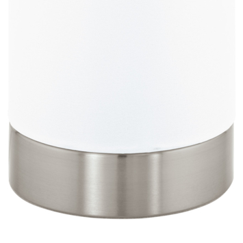 La lampe à poser Eglo Damasco convient à une ampoule d'une puissance maximale de 60 watts avec une douille standard E27. En installant une LED économe en énergie, vous consommerez moins d'énergie qu'avec une ampoule à incandescence ou une ampoule à économie d'énergie. Le socle de la lampe est en acier à finition nickel mat. Cela confère à la lampe de table une allure élégante. L'abat-jour en verre dépoli blanc laisse passer une belle lumière diffuse. La lampe à poser Damasco d'Eglo apportera ainsi une bel éclairage d'ambiance à tout intérieur moderne.