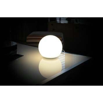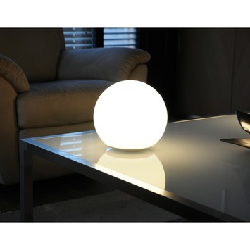 La lampe de table Dahlia de 8 watts ou 500 lumens est l'une des nombreuses lampes de la collection unique iDual. Cette lampe ultramoderne ronde est en verre blanc. Qu'est-ce qui rend cette collection tellement particulière ? Vous pouvez aisément régler les lampes à led en intensité et modifier la couleur de la lumière pour créer l'ambiance qui vous convient. Commande à distance comprise.