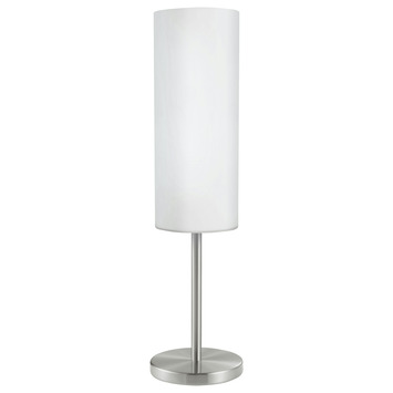 Cette élégante lampe de table Troy d'Eglo est en métal avec un abat-jour droit en opaline blanche. La source lumineuse contient une douille E27. Il s'agit d'une grande douille. Avec cette lampe élégante, vous créez une ambiance agréable dans le salon selon vos préférences. Elle est également idéale sur une table de chevet. Ce produit est vendu sans ampoule, vous choisissez donc vous-même la couleur de lumière qui convient à votre salon. Cette lampe est dimmable si vous optez pour une ampoule dimmable (max. 60 W). En résumé : la lampe de table Troy est une source de lumière agréable pour le salon.