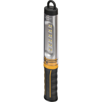 Lampe de travail LED rechargeable WL 500 A IP54 520lm pour une utilisation polyvalente. Idéale pour l'atelier et les loisirs. 12 LED Seoul SMD très claires. Modes d'éclairage : 100% - 40% - 10% pour une durée d'éclairage plus longue. Bouton-poussoir marche-arrêt. Poignée ergonomique en caoutchouc. Aimant intégré dans le socle et crochet robuste, extensible et rotatif dans le support. Boîtier résistant aux chocs. Batterie Li-ion 3,7V / 2,2Ah intégrée avec témoin de charge. Prise-chargeur USB située dans le socle. Avec câble de raccordement USB.