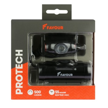La lampe frontale PROTECH H0917 de FAVOUR à un impressionnant rendement lumineux de 350 lumens. Vous visitez un chantier et avez besoin d’éclairage supplémentaire? Maintenez l’interrupteur enfoncé pour passer en mode boost qui fournit pas moins de 500 lumens. Cette lampe frontale est très facile à utiliser d’une seule main. Vous passerez aisément d’un faisceau concentré à une lumière plus diffuse. Cette lampe orientable permet d’éclairer avec précision ce que vous voulez voir. La batterie est plate? Elle se charge par micro USB! Le témoin LED indique son niveau de charge. Lorsque le témoin est vert, c’est que la batterie est pleine. La lampe PROTECH H0917 possède deux ampoules. Une à l’avant et une autre, plus petite, à l’arrière. Pour permettre à tout le monde de voir où on marche. Robuste, cette lampe frontale convient à merveille pour les travaux ardus. Son boîtier en aluminium résiste à des chutes de 2 mètres de haut et est classé IP6X.