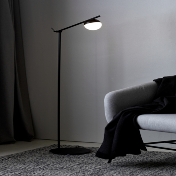 Contina est une lampe sur pied moderne en métal noir mat avec de nombreuses possibilités. La lampe est orientable des deux côtés et la partie supérieure du cadre est réglable en hauteur, elle peut donc répondre à plusieurs besoins.