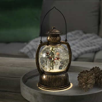 Créez une chaleureuse ambiance de Noël grâce aux décorations GAMMA. Cette lanterne de neige remplie d’eau avec une famille Bonhomme de neige et LED lumière blanche chaude mettra immédiatement une douce ambiance dans la maison. Elle fonctionne avec 3 piles AA et mesure 12,7 cm de large x 20 cm de haut.