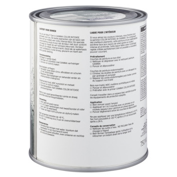 GAMMA Color Intense est un concept de couleur pour la peinture intérieure de haute qualité et d'une force de couleur profonde. Cette peinture d'intérieur GAMMA color intense haute brillance céladon 750 ml est une peinture à base d'eau. La peinture à base d'eau est le meilleur choix pour l'intérieur. La peinture est inodore et conserve sa couleur plus longtemps. Cette peinture convient au bois et, en combinaison avec l'apprêt approprié, également au métal et aux plastiques. En utilisant les meilleurs pigments de cette peinture, vous conservez la force de la couleur profonde et intense. La laque à base d'eau coule parfaitement et a une très bonne couverture Pour un résultat optimal de cette laque d'intérieur GAMMA Color Intens, traitez d'abord la surface avec l'apprêt GAMMA Color Intens. Le bidon a une capacité de 750 millilitres, ce qui est suffisant pour une surface d'environ 7,5 m². Trois heures après l'application de la peinture, elle est déjà sèche, après 24 heures, vous pouvez appliquer la couche suivante. Traitez la peinture à des températures comprises entre 8 et 25°C. La laque peut être utilisée comme finition pour des pièces neuves non traitées, mais aussi sur des peintures existantes ou pour donner un nouveau look à des meubles. La peinture intérieure est facile à appliquer avec un pinceau ou un rouleau à peinture pour les peintures à base d'eau. Vous pouvez les acheter dans le magasin GAMMA le plus proche ou via la boutique en ligne.Nous avons les 20 couleurs les plus tendances disponibles prêtes à l'emploi. Aussi bien en peinture murale qu'en laque. Si la couleur que vous recherchez n'est pas répertoriée, il est toujours possible de faire mélanger votre couleur spécialement par notre conseiller peinture. Ainsi vous créez toujours l'ambiance de vie qui vous ressemble : romantique, industrielle, sereine ou très colorée, tout est possible. Bref, cette peinture est un excellent choix pour donner un nouveau look à votre intérieur.