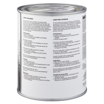 GAMMA Color Intense est un concept de couleur pour la peinture intérieure de haute qualité et d'une force de couleur profonde. Cette peinture d'intérieur GAMMA color intense haute brillance émeri 750 ml est une peinture à base d'eau. La peinture à base d'eau est le meilleur choix pour l'intérieur. Il est inodore et conserve sa couleur plus longtemps. Cette peinture convient au bois et, en combinaison avec l'apprêt approprié, également au métal et aux plastiques. En utilisant les meilleurs pigments de cette peinture, vous conservez la force de la couleur profonde et intense. La laque à base d'eau coule très bien et offre une très bonne couverture.Pour un résultat optimal de cette laque d'intérieur GAMMA Color Intens, traitez d'abord la surface avec l'apprêt GAMMA Color Intens. Le bidon a une capacité de 750 millilitres, ce qui est suffisant pour une surface d'environ 7,5 m². Trois heures après l'application de la peinture, elle est déjà sèche, après 24 heures, vous pouvez appliquer la couche suivante. Traitez la peinture à des températures comprises entre 8 et 25 ° C. La peinture peut être utilisée comme finition pour de nouvelles pièces non traitées, mais aussi sur des peintures existantes ou pour donner un nouveau look à des meubles. La peinture intérieure est facile à appliquer avec un pinceau ou un rouleau à peinture pour la peinture à base d'eau. Vous pouvez les acheter au GAMMA le plus proche ou via la boutique en ligne. Nous avons les 20 couleurs les plus tendances disponibles prêtes pour vous. Aussi bien en peinture murale qu'en laque. Si la couleur que vous recherchez n'est pas répertoriée, il est toujours possible de faire mélanger votre couleur spécialement par notre conseiller peinture. Ainsi vous créez toujours l'ambiance de vie qui vous ressemble : romantique, industrielle, sereine ou très colorée, tout est possible. Bref, cette peinture est un excellent choix pour donner un nouveau look à votre intérieur.
