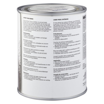 GAMMA Color Intense est un concept de couleur pour la peinture intérieure de haute qualité et d'une force de couleur profonde. Cette peinture d'intérieur GAMMA couleur intense haute brillance platine 750 ml est une peinture à base d'eau. La peinture à base d'eau est le meilleur choix pour l'intérieur. La peinture est inodore et conserve sa couleur plus longtemps. Cette peinture convient au bois et, en combinaison avec l'apprêt approprié, également au métal et aux plastiques. En utilisant les meilleurs pigments de cette peinture, vous conservez la force de la couleur profonde et intense. La laque à base d'eau coule parfaitement et a une très bonne couverture Pour un résultat optimal de cette laque d'intérieur GAMMA Color Intens, traitez d'abord la surface avec l'apprêt GAMMA Color Intens. Le bidon a une capacité de 750 millilitres, ce qui est suffisant pour une surface d'environ 7,5 m². Trois heures après l'application de la peinture, elle est déjà sèche, après 24 heures, vous pouvez appliquer la couche suivante. Traitez la peinture à des températures comprises entre 8 et 25°C. La laque peut être utilisée comme finition pour des pièces neuves non traitées, mais aussi sur des peintures existantes ou pour donner un nouveau look à des meubles. La peinture intérieure est facile à appliquer avec un pinceau ou un rouleau à peinture pour les peintures à base d'eau. Vous pouvez les acheter au GAMMA le plus proche ou via la boutique en ligne.Nous avons les 20 couleurs les plus tendances prêtes pour vous. Aussi bien en peinture murale qu'en laque. Si la couleur que vous recherchez n'est pas répertoriée, il est toujours possible de faire mélanger votre couleur spécialement par notre conseiller peinture. Ainsi vous créez toujours l'ambiance de vie qui vous ressemble : romantique, industrielle, sereine ou très colorée, tout est possible. Bref, cette peinture est un excellent choix pour donner un nouveau look à votre intérieur.