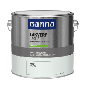 La laque intérieure mate GAMMA RAL 9016 frost de 2,5 litres est adaptée pour peindre notamment des portes, des encadrements et des meubles à l'intérieur. Cette peinture résistante aux rayures et aux chocs protège bien les surfaces et leur donne une finition mate soignée. La laque est à base aqueuse, ce qui la rend peu odorante et moins sujette au jaunissement. Vous pouvez l'appliquer directement sur le bois, et en combinaison avec une sous-couche appropriée, aussi sur le métal et le plastique. La peinture est sèche au toucher après 1 heure et peut être repeinte après 12 heures. Un pot de 2,5 litres suffit pour peindre environ 30 m². Pour le meilleur résultat, appliquez la peinture à des températures comprises entre 8 et 25°C. Vous l'appliquez facilement avec un pinceau ou un rouleau pour peinture à base aqueuse. GAMMA propose cette peinture intérieure en 14 couleurs et 3 niveaux de brillance : brillant, satin et mat. Votre couleur ne figure pas parmi ces options ? Un spécialiste de la peinture peut mélanger votre couleur sur mesure en magasin.