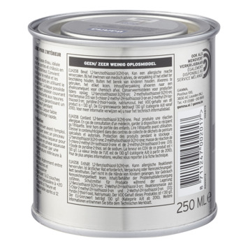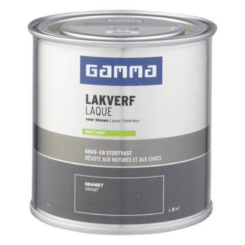 Cette peinture d'intérieur GAMMA granit mat 250 ml est une peinture à base d'eau. La peinture à base d'eau est le meilleur choix pour l'intérieur. Il est inodore et conserve sa couleur plus longtemps. Cette peinture résistante aux rayures et aux chocs convient au bois et, en combinaison avec l'apprêt approprié, également au métal et aux plastiques. Pour un résultat optimal de la peinture intérieure GAMMA, traitez d'abord la surface avec l'apprêt GAMMA pour intérieur. Le bidon a une contenance de 250 millilitres, ce qui est suffisant pour une surface d'environ 3 m². Trois heures après l'application de la peinture, elle est déjà sèche, après 24 heures, vous pouvez appliquer la couche suivante. Traitez la peinture à des températures comprises entre 8 et 25 ° C. La peinture peut être utilisée comme finition pour de nouvelles pièces non traitées, mais aussi sur des peintures existantes ou pour donner un nouveau look à des meubles. La peinture intérieure est facile à appliquer avec un pinceau ou un rouleau à peinture pour la peinture à base d'eau. Vous pouvez les acheter chez GAMMA le plus proche ou via la boutique en ligne Nous avons 20 couleurs prêtes pour vous en haute brillance, satinée et mate. Aussi bien en peinture murale qu'en laque. Si la couleur que vous recherchez n'est pas répertoriée, il est toujours possible de faire mélanger votre couleur spécialement par notre conseiller peinture. Ainsi vous créez toujours l'ambiance de vie qui vous ressemble : romantique, industrielle, sereine ou très colorée, tout est possible. Bref, cette peinture est un excellent choix pour donner un nouveau look à votre intérieur.