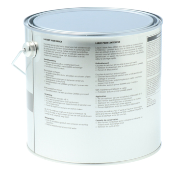 Cette laque intérieure GAMMA est une peinture à base aqueuse. La peinture à base aqueuse est le meilleur choix pour l’intérieur d’une habitation. Elle est quasiment inodore et conserve longtemps sa teinte. Cette peinture résistante aux rayures et aux chocs convient pour le bois et, moyennant l’application préalable d’un primer adéquat, également pour le métal et les plastiques. Pour un résultat optimal, traitez votre support avec le primer GAMMA pour intérieur avant d’appliquer la laque intérieure GAMMA. La peinture est déjà sèche hors poussière une heure après son application; la couche suivante peut s’appliquer après un délai de 20 heures. La laque est utilisable comme finition de nouvelles surfaces non traitées, mais aussi sur des peintures existantes ou sur des meubles, pour les rénover. La laque intérieure s’applique aisément au pinceau ou au rouleau à laquer pour peinture à base aqueuse.