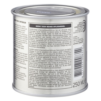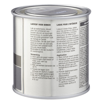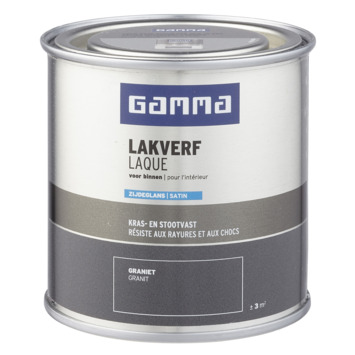 Ce vernis intérieur GAMMA satiné brillant 250 ml GRANIT est une peinture à l'eau. La peinture à base d'eau est le meilleur choix pour l'intérieur. Il est inodore et conserve sa couleur plus longtemps. Cette peinture résistante aux rayures et aux chocs convient au bois et, en combinaison avec l'apprêt approprié, également au métal et aux plastiques. Pour un résultat optimal de la peinture intérieure GAMMA, traitez d'abord la surface avec l'apprêt GAMMA pour intérieur. Le bidon a une contenance de 250 millilitres, ce qui est suffisant pour une surface d'environ 3 m². Trois heures après l'application de la peinture, elle est déjà sèche, après 24 heures, vous pouvez appliquer la couche suivante. Traitez la peinture à des températures comprises entre 8 et 25 ° C. La peinture peut être utilisée comme finition pour de nouvelles pièces non traitées, mais aussi sur des peintures existantes ou pour donner un nouveau look à des meubles. La peinture intérieure est facile à appliquer avec un pinceau ou un rouleau à peinture pour la peinture à base d'eau. Vous pouvez les acheter chez GAMMA le plus proche ou via la boutique en ligne Nous avons 20 couleurs prêtes pour vous en haute brillance, satinée et mate. Aussi bien en peinture murale qu'en laque. Si la couleur que vous recherchez n'est pas répertoriée, il est toujours possible de faire mélanger votre couleur spécialement par notre conseiller peinture. Ainsi vous créez toujours l'ambiance de vie qui vous ressemble : romantique, industrielle, sereine ou très colorée, tout est possible. Bref, cette peinture est un excellent choix pour donner un nouveau look à votre intérieur.