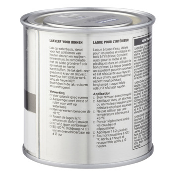 Cette peinture intérieure GAMMA satinée brillante 250 ml gris nuage est une peinture à l'eau. La peinture à base d'eau est le meilleur choix pour l'intérieur. Il est inodore et conserve sa couleur plus longtemps. Cette peinture résistante aux rayures et aux chocs convient au bois et, en combinaison avec l'apprêt approprié, également au métal et aux plastiques. Pour un résultat optimal de la peinture intérieure GAMMA, traitez d'abord la surface avec l'apprêt GAMMA pour intérieur. Le bidon a une contenance de 250 millilitres, ce qui est suffisant pour une surface d'environ 3 m². Trois heures après l'application de la peinture, elle est déjà sèche, après 24 heures, vous pouvez appliquer la couche suivante. Traitez la peinture à des températures comprises entre 8 et 25 ° C. La peinture peut être utilisée comme finition pour de nouvelles pièces non traitées, mais aussi sur des peintures existantes ou pour donner un nouveau look à des meubles. La peinture intérieure est facile à appliquer avec un pinceau ou un rouleau à peinture pour la peinture à base d'eau. Vous pouvez les acheter chez GAMMA le plus proche ou via la boutique en ligne Nous avons 20 couleurs prêtes pour vous en haute brillance, satinée et mate. Aussi bien en peinture murale qu'en laque. Si la couleur que vous recherchez n'est pas répertoriée, il est toujours possible de faire mélanger votre couleur avec notre conseiller peinture. Ainsi vous créez toujours l'ambiance de vie qui vous ressemble : romantique, industrielle, sereine ou très colorée, tout est possible. Bref, cette peinture est un excellent choix pour donner un nouveau look à votre intérieur.