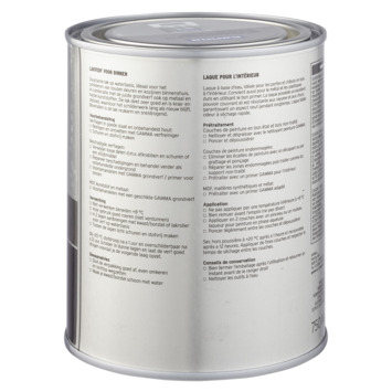 Cette peinture intérieure GAMMA satinée brillante 750 ml noir trafic est une peinture à base d'eau. La peinture à base d'eau est le meilleur choix pour l'intérieur. Il est inodore et conserve sa couleur plus longtemps. Cette peinture résistante aux rayures et aux chocs convient au bois et, en combinaison avec l'apprêt approprié, également au métal et aux plastiques. Pour un résultat optimal de la peinture intérieure GAMMA, traitez d'abord la surface avec l'apprêt GAMMA pour intérieur. Le bidon a une capacité de 750 millilitres, ce qui est suffisant pour une surface d'environ 9 m². Trois heures après l'application de la peinture, elle est déjà sèche, après 24 heures, vous pouvez appliquer la couche suivante. Traitez la peinture à des températures comprises entre 8 et 25 ° C. La peinture peut être utilisée comme finition pour de nouvelles pièces non traitées, mais aussi sur des peintures existantes ou pour donner un nouveau look à des meubles. La peinture intérieure est facile à appliquer avec un pinceau ou un rouleau à peinture pour la peinture à base d'eau. Vous pouvez les acheter chez GAMMA le plus proche ou via la boutique en ligne Nous avons 20 couleurs prêtes pour vous en haute brillance, satinée et mate. Aussi bien en peinture murale qu'en laque. Si la couleur que vous recherchez n'est pas répertoriée, il est toujours possible de faire mélanger votre couleur spécialement par notre conseiller peinture. Ainsi vous créez toujours l'ambiance de vie qui vous ressemble : romantique, industrielle, sereine ou très colorée, tout est possible. Bref, cette peinture est un excellent choix pour donner un nouveau look à votre intérieur.
