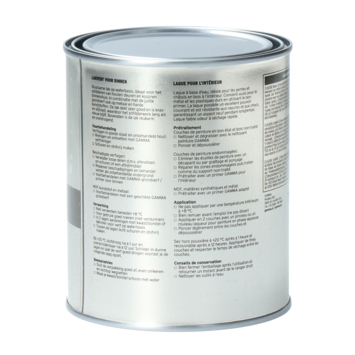 Cette laque intérieure GAMMA est une peinture à base aqueuse. La peinture à base aqueuse est le meilleur choix pour l’intérieur d’une habitation. Elle est quasiment inodore et conserve longtemps sa teinte. Cette peinture résistante aux rayures et aux chocs convient pour le bois et, moyennant l’application préalable d’un primer adéquat, également pour le métal et les plastiques. Pour un résultat optimal, traitez votre support avec le primer GAMMA pour intérieur avant d’appliquer la laque intérieure GAMMA. La peinture est déjà sèche hors poussière une heure après son application; la couche suivante peut s’appliquer après un délai de 20 heures. La laque est utilisable comme finition de nouvelles surfaces non traitées, mais aussi sur des peintures existantes ou sur des meubles, pour les rénover. La laque intérieure s’applique aisément au pinceau ou au rouleau à laquer pour peinture à base aqueuse.