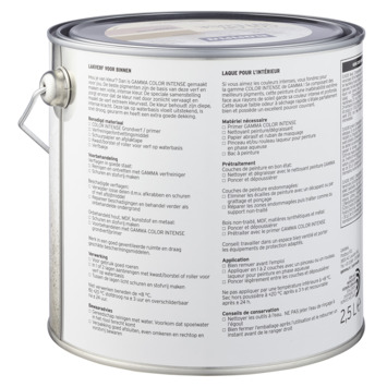 GAMMA Color Intense est un concept de couleur pour la peinture intérieure de haute qualité et d'une force de couleur profonde. Cette peinture intérieure GAMMA couleur intense satinée brillante 2,5 L RAL 9001 est une peinture à l'eau. La peinture à base d'eau est le meilleur choix pour l'intérieur. Il est inodore et conserve sa couleur plus longtemps. Cette peinture convient au bois et, en combinaison avec l'apprêt approprié, également au métal et aux plastiques. En utilisant les meilleurs pigments de cette peinture, vous conservez la force de la couleur profonde et intense. La laque à base d'eau coule parfaitement et a une très bonne couverture Pour un résultat optimal de cette laque d'intérieur GAMMA Color Intens, traitez d'abord la surface avec l'apprêt GAMMA Color Intens. Le bidon a une capacité de 2,5 litres, ce qui est suffisant pour une surface d'environ 25 m². Trois heures après l'application de la peinture, elle est déjà sèche, après 24 heures, vous pouvez appliquer la couche suivante. Traitez la peinture à des températures comprises entre 8 et 25 ° C. La peinture peut être utilisée comme finition pour de nouvelles pièces non traitées, mais aussi sur des peintures existantes ou pour donner un nouveau look à des meubles. La peinture intérieure est facile à appliquer avec un pinceau ou un rouleau à peinture pour la peinture à base d'eau. Vous pouvez les acheter au GAMMA le plus proche ou via la boutique en ligne.Nous avons les 20 couleurs les plus tendances disponibles prêtes pour vous. Aussi bien en peinture murale qu'en laque. Si la couleur que vous recherchez n'est pas répertoriée, il est toujours possible de faire mélanger votre couleur spécialement par notre conseiller peinture. Ainsi vous créez toujours l'ambiance de vie qui vous ressemble : romantique, industrielle, sereine ou très colorée, tout est possible. Bref, cette peinture est un excellent choix pour donner un nouveau look à votre intérieur.