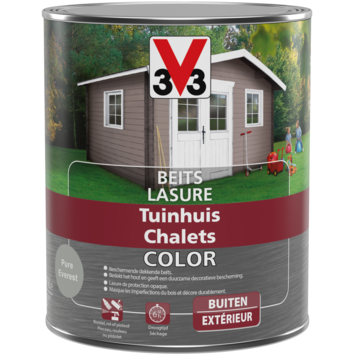 La lasure Chalets Color V33 est une lasure satinée, idéale pour les chalets et abris de jardin. Cette lasure protège le bois et dissimule ses irrégularités grâce à un pouvoir couvrant particulièrement élevé. Cette gamme propose différentes couleurs.