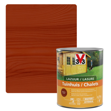 La lasure Chalets Color V33 est une lasure satinée, idéale pour les chalets et abris de jardin. Cette lasure protège le bois et dissimule ses irrégularités grâce à un pouvoir couvrant particulièrement élevé. Cette gamme propose différentes couleurs.