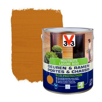 Le vernis bois Eco Protection pour portes et fenêtres de V33 est un vernis mat à base de fibres de bois naturelles. Ce vernis est microporeux - ce qui permet au bois de respirer – et ne goutte pas. Il protège le bois des intempéries et des rayons UV. En plus des portes et fenêtres, ce vernis peut également être utilisé pour l’entretien d’une cabane de jardin et de dalles et tuiles en bois.