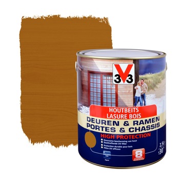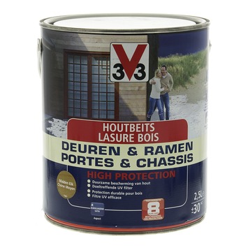Le vernis bois High Protection pour portes et fenêtres de V33 est un vernis satiné qui résiste très bien à l’eau, aux rayons UV et aux intempéries. Ce vernis est microporeux - ce qui permet au bois de respirer – et ne goutte pas. En plus des portes et fenêtres, ce vernis peut également être utilisé pour l’entretien d’une cabane de jardin et de dalles et tuiles en bois.