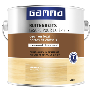 La lasure extérieure GAMMA pour portes et châssis est une protection du bois transparente à base de solvants. La lasure offre une protection durable contre les rayons UV, les intempéries et régularise l'humidité de vos portes, fenêtres et lambris de façade pour une période de 7 ans. Grâce au filtre UV, le niveau de brillant est maintenu fort longtemps. La structure et le fil du bois restent visibles après traitement. Appliquer en couches minces et bien laisser sécher entre les couches. Sec au toucher après ± 4 heures et recouvrable après ± 18 heures.