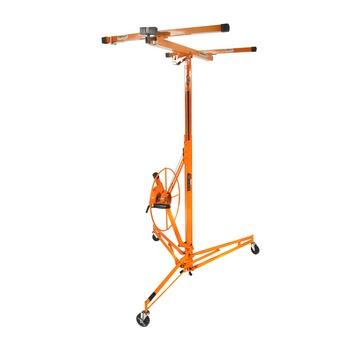 Avec le lève-plaques pour plafond, vous pouvez facilement installer des panneaux, comme des plaques de plâtre, sur des plafonds droits ou inclinés. La hauteur maximale du lève-plaques est de 335 cm. De plus, il est inclinable, mobile et équipé d’un frein de sécurité automatique ainsi que d’un treuil manuel. Pour un transport aisé, le lève-plaques peut être replié.