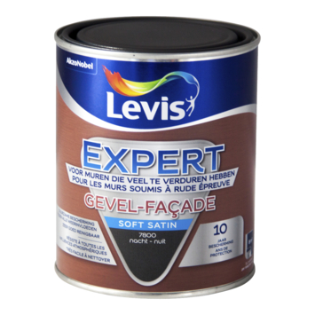 Levis Expert, c'est LA peinture des murs extérieurs qui vont en voir des vertes et des pas mûres. Protection durable contre les conditions météo, se nettoie facilement. Choisissez entre plusieurs couleurs et formats comme cette peinture soft satin de couleur nuit. (1 L).